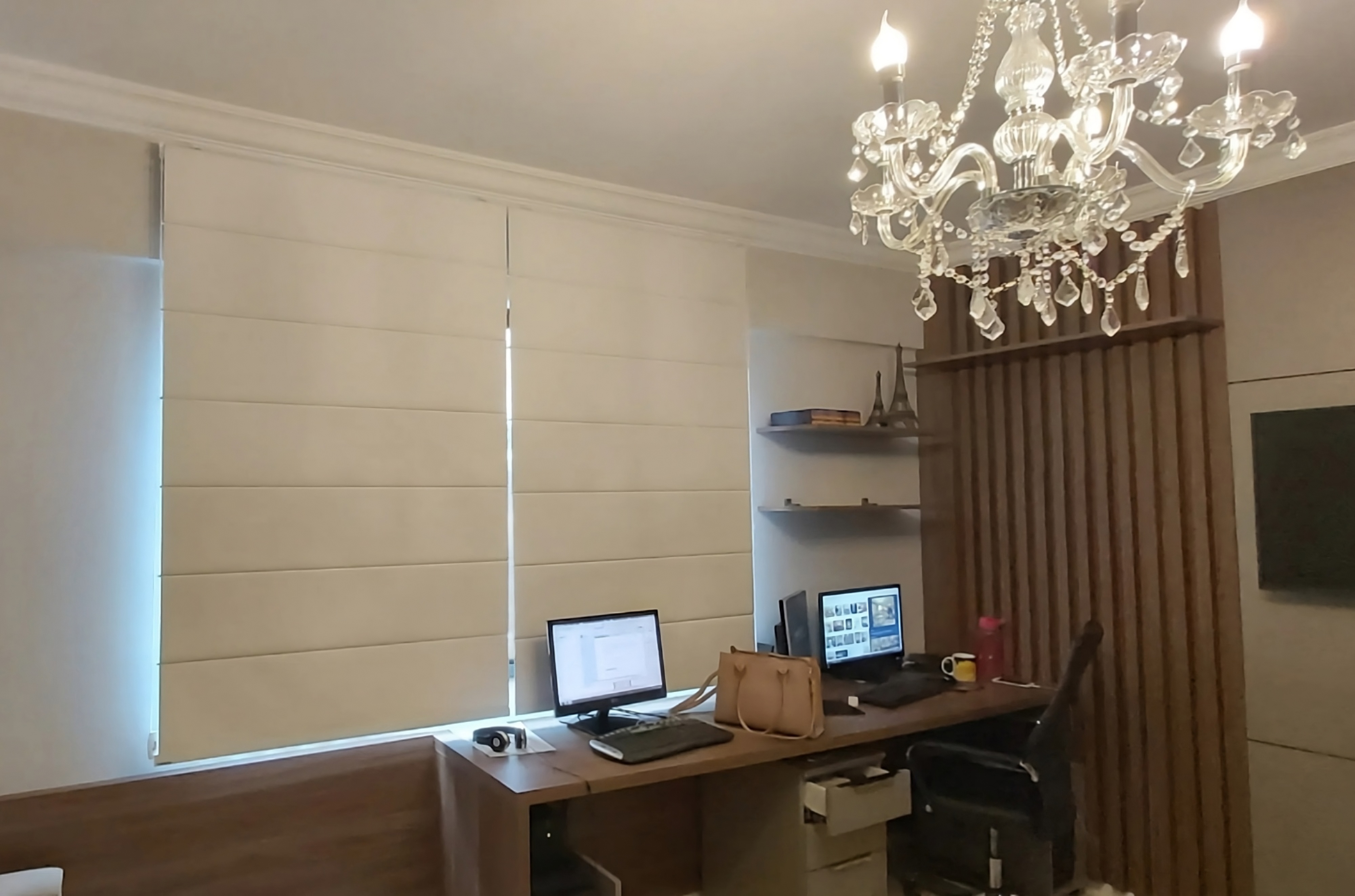 A persiana Romana é a escolha certa para o ambiente que requer charme e elegância. A persiana Romana é formada por “gomos” largos e horizontais que se dobram e desdobram para cima ou para baixo na medida em que a persiana é aberta ou fechada. O espaço entre as dobras é o que torna esse modelo tão diferenciado, transmitindo leveza e sofisticação aos ambientes.